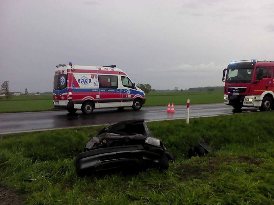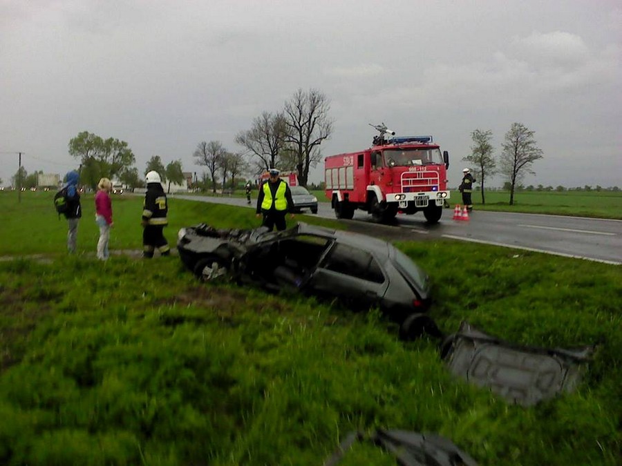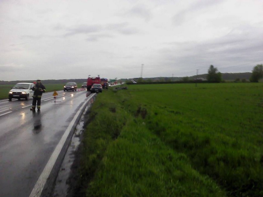 Na miejscu zdarzenia jednostka zastała samochód w przydrożnym rowie ale na tyle mocno rozbity by wydostać kierowcę musieli użyć sprzętu hydraulicznego. Po kilku minutach dojechały dwa zastępy JRG Ostrów Wlkp. i Karetka Pogotowia. Wspólnymi siłami wydostano kierowca z samochodu i przekazano Ratownikom z Pogotowia. Kierowca był przytomny ale poobijany.