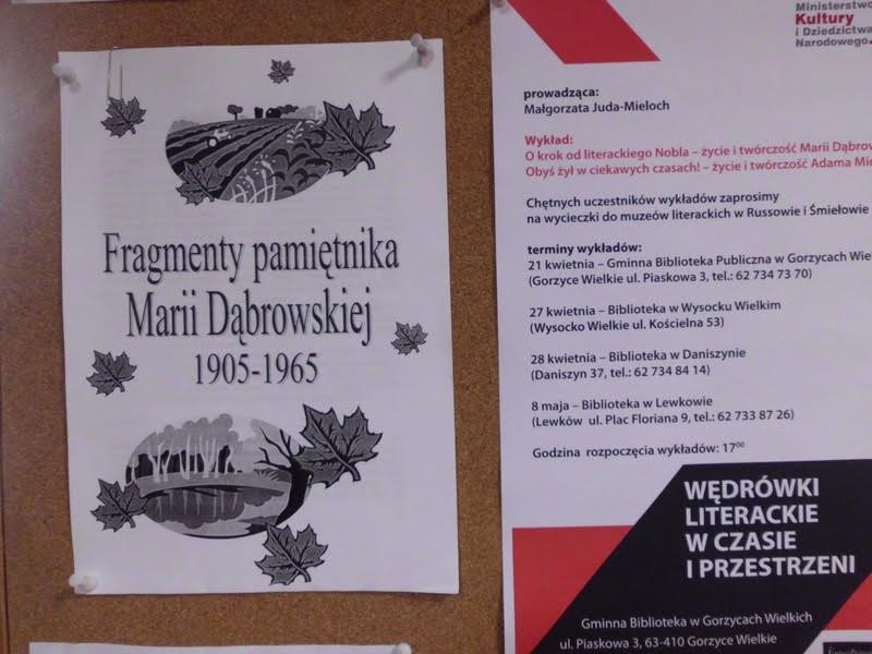 Pani Małgorzata Juda-Mieloch wygłosiła bardzo ciekawy wykład, ukazując w trochę innym świetle życie Adama Mickiewicza i Marii Dąbrowskiej. Panie słuchając wykładu, żywo reagowały na nieznane fakty z życia wielkich osobistości z dziedziny literatury. Następnym etapem dla pań uczestniczącym w spotkaniu w bibliotece, będzie organizowana wycieczka do miejsc pamięci A. Mickiewicza i M. Dąbrowskiej.