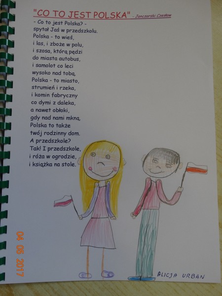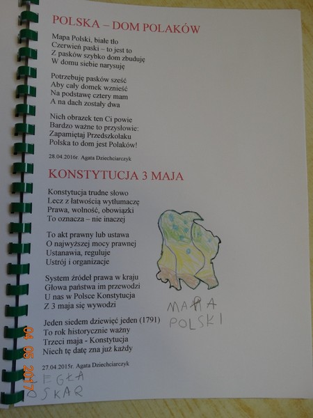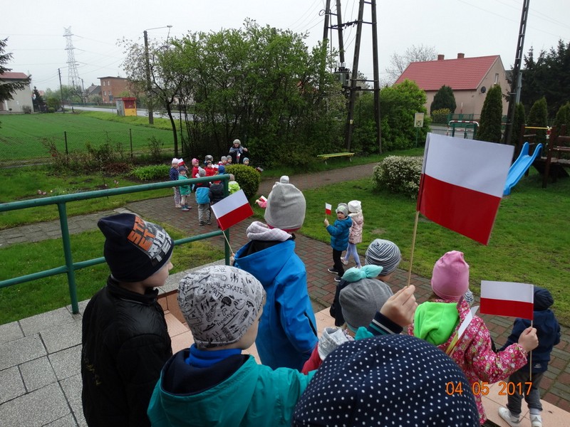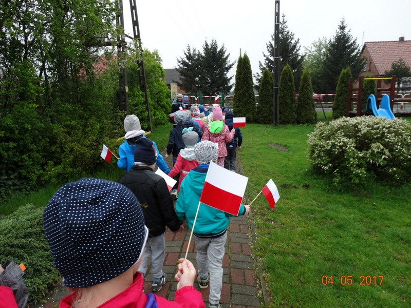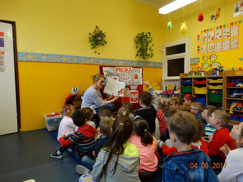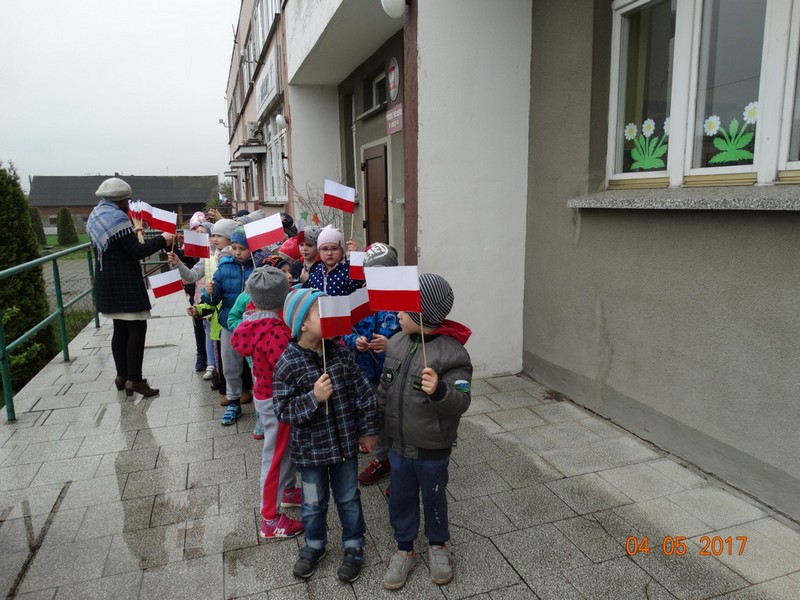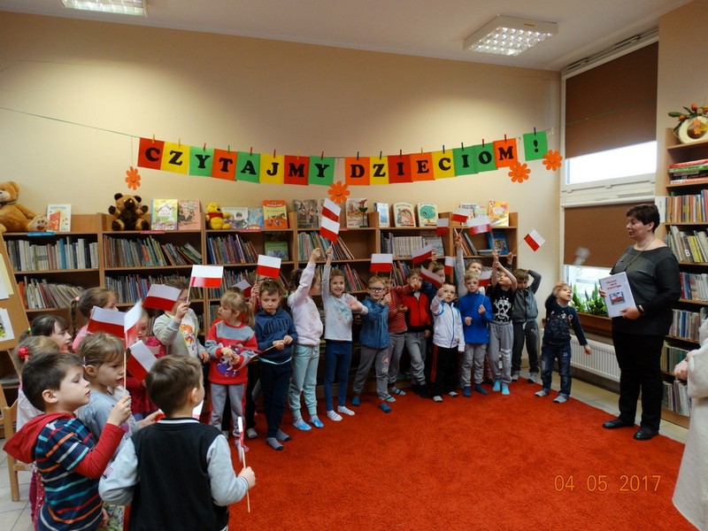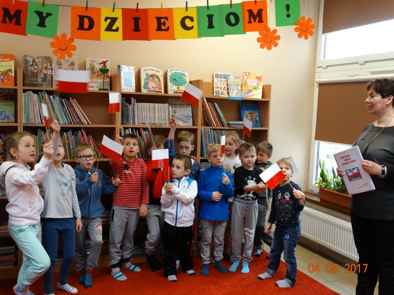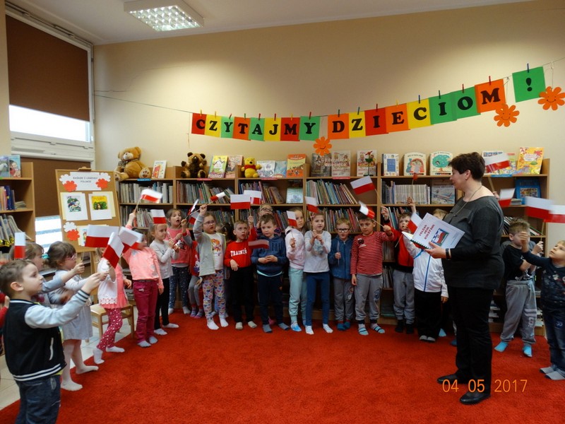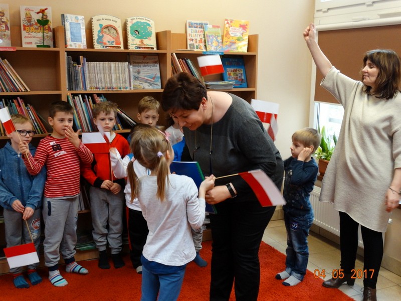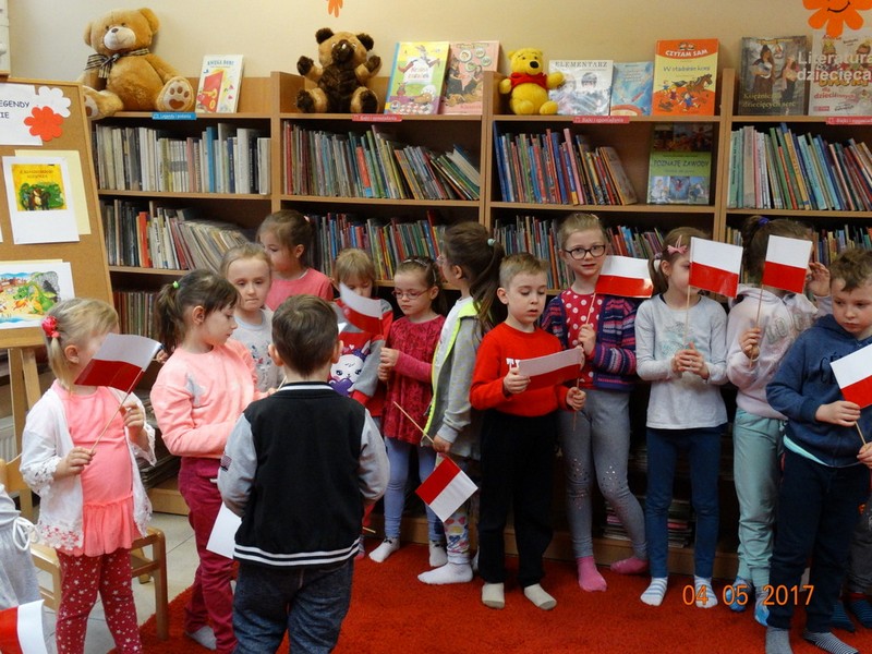 Obchody tych świąt biblioteka wspólnie z przedszkolem w Daniszynie zaplanowała na 4 maja, by łatwiej było się odwołać do doświadczeń i przeżyć dzieci związanych z tymi świętami. W przedszkolu dzieci podczas zajęć prowadzonych przez nauczycielki słuchały ciekawostek o Ojczyźnie, jej barwach narodowych oraz przypominały historię naszego kraju. W drugiej części dnia przedszkolaki przybyły do biblioteki z flagami w ręce na drugie spotkanie z cyklu „Patriotyczne czytanie w bibliotece”. Podczas spotkania dzieci udowodniły, że posiadają ogromną wiedzę o Polsce opowiadając o swych ilustracjach, które wykonały do zbioru wierszy patriotycznych zebranych przez p. Arletę Gorzelaną. Przedszkolaki tak wspaniale zilustrowaną „książkę” podarowały bibliotekarce. Dzieci były bardzo dumne, że mogą posłuchać wierszy z książki, której są współautorami. Jak przystało na cykl patriotycznego czytania nie mogło zabraknąć polskich legend. Tym razem przedszkolaki wysłuchały legendy o powstaniu naszej stolicy pt. „Wars i Sawa”. W ten sposób już od dzieciństwa kształtuje się w dzieciach uczucie miłości i przywiązania do własnego kraju oraz promuje polskie symbole narodowe.